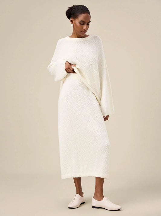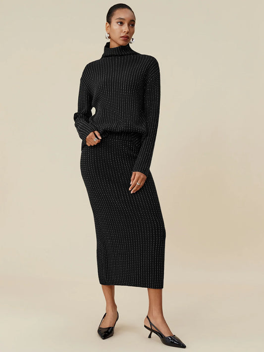 Triacetate Örgü Yelek Elbise ve Çizgili Açık Örgü Kazak İki Parçalı Takım