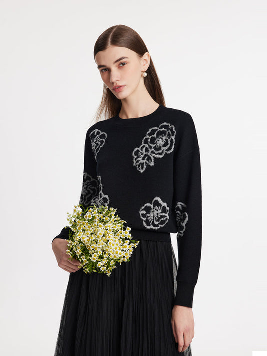 35% İndirimÇiçekli Jakarlı Yuvarlak Yaka Kadın Kazak