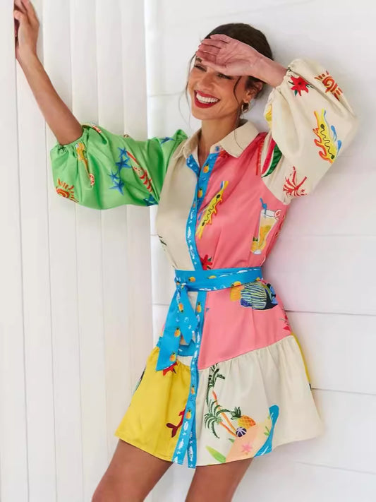 35% İndirimGünlük Graffiti Evergreen Baskı Mini Elbise