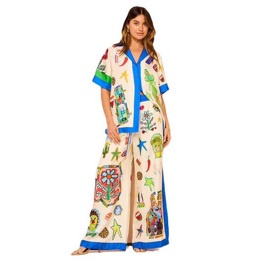 33% İndirimBenzersiz Baskılı Şort Yaka Bol Gömlek Takımı