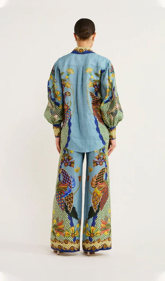 Çiçekli İki Parça Kıyafet Gömlek ve Pantolon Takımı