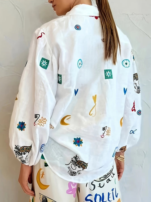 Gömlek Yaka Yazlık Botanik Baskı Tatil Günlük Takım