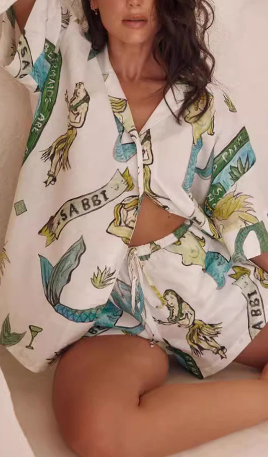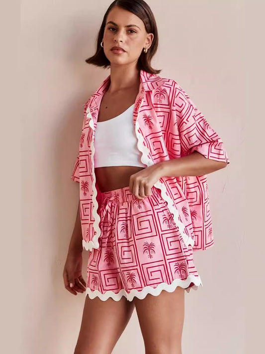 33% İndirimGüneş Şezlongu Bol Baskılı Gömlek Şort Takımı