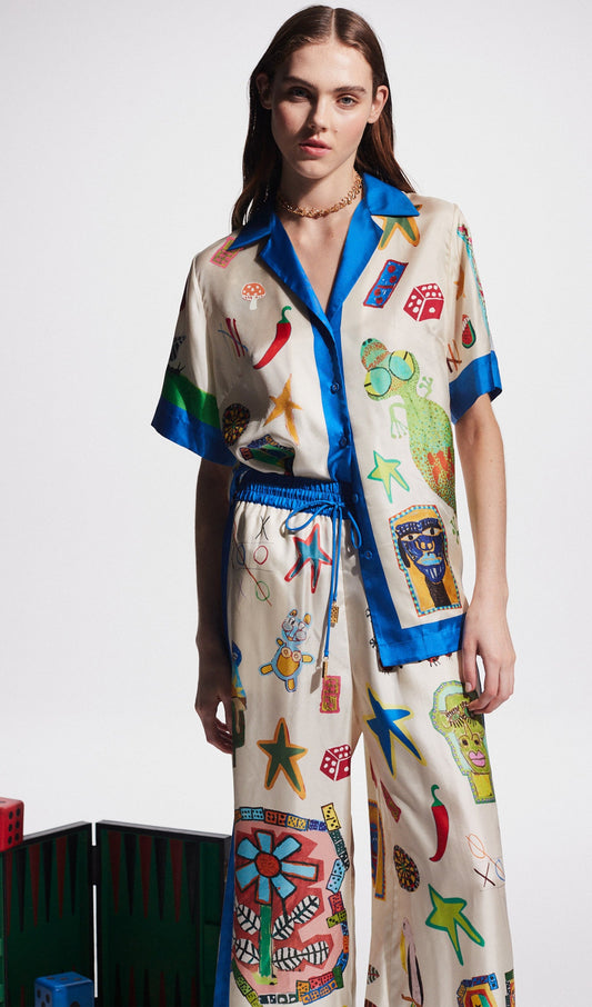 35% İndirimKomik Yaz Cepli Geniş Paça Pantolon-Set