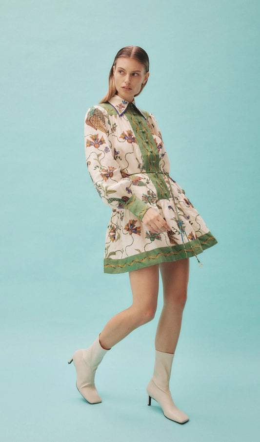 24% İndirimÇiçekli Dik Yaka Kemerli Mini Elbise