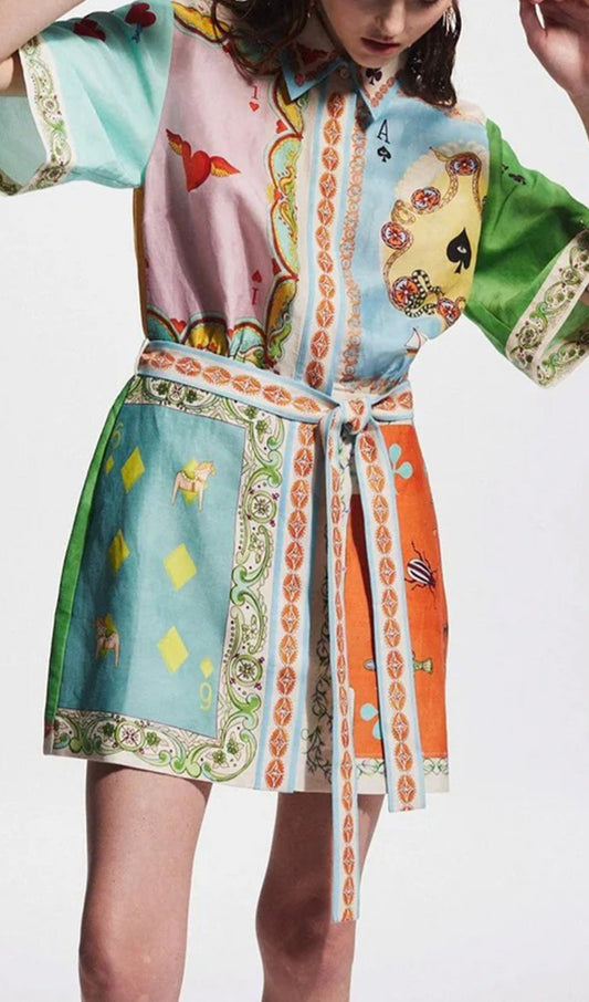 27% İndirimÇiçekli Çok Renkli Kemerli Mini Elbise