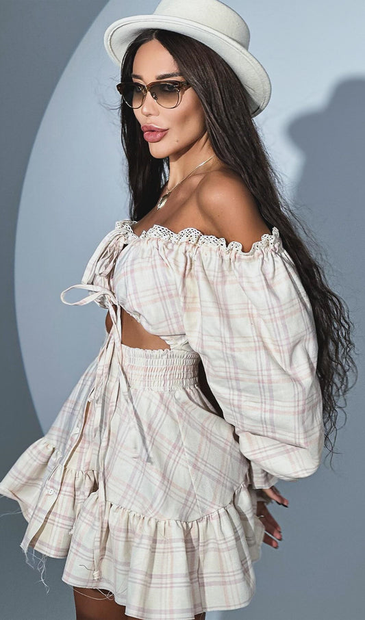 24% İndirimDantelli Mini Elbise İki Parçalı Takım