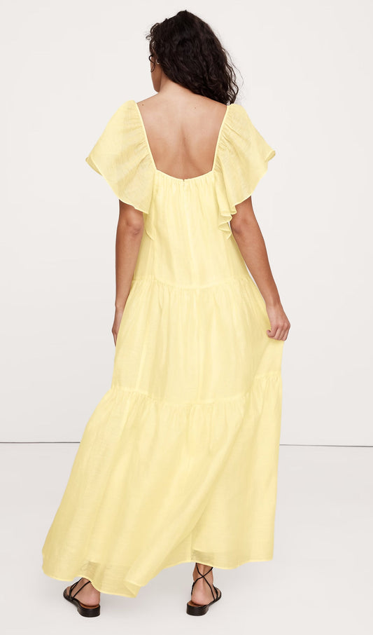 24% İndirimPamuklu Fırfırlı Kısa Kollu Midi Elbise