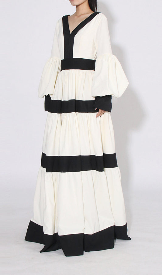 30% İndirimSiyah Beyaz Patchwork Maksi Elbise