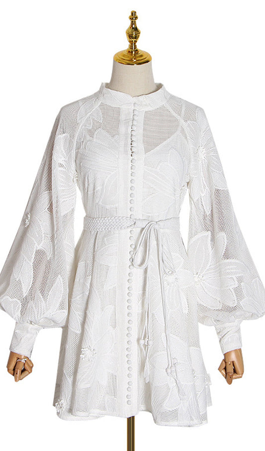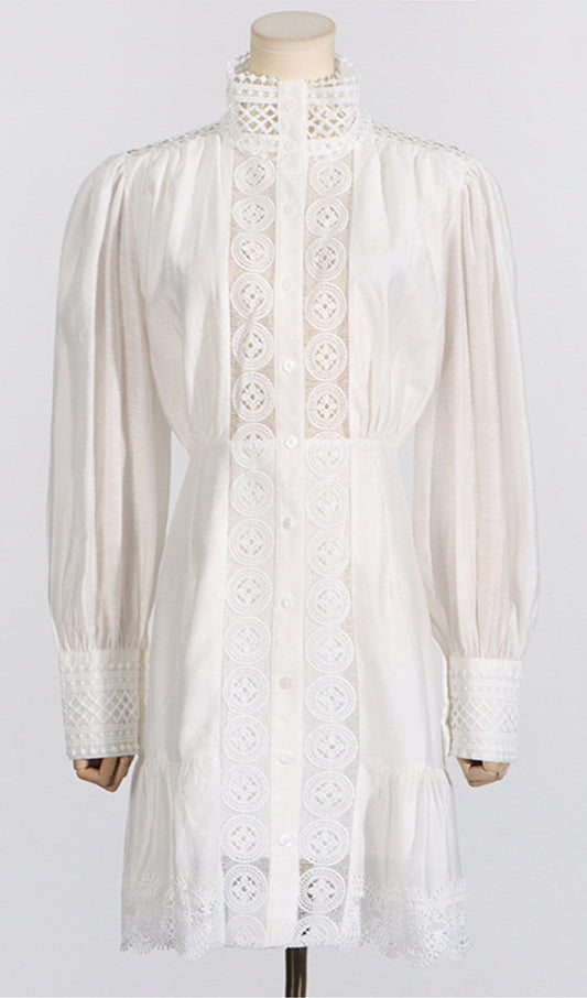 33% İndirimİpli Dantelli Kollu Düğmeli Mini Elbise