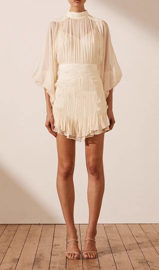 30% İndirimMock Yaka Fener Kollu Mini Elbise