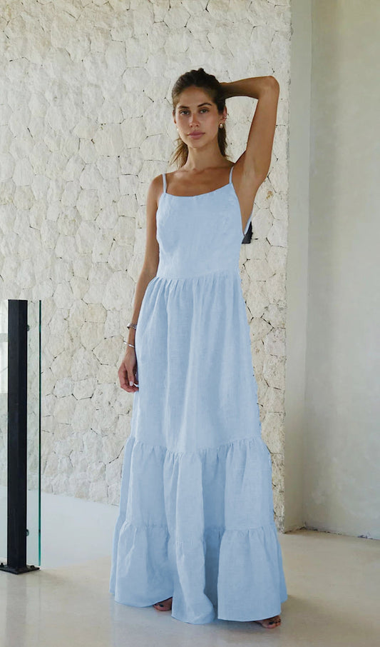 30% İndirimVintage Kare Yaka A Line Maksi Elbise