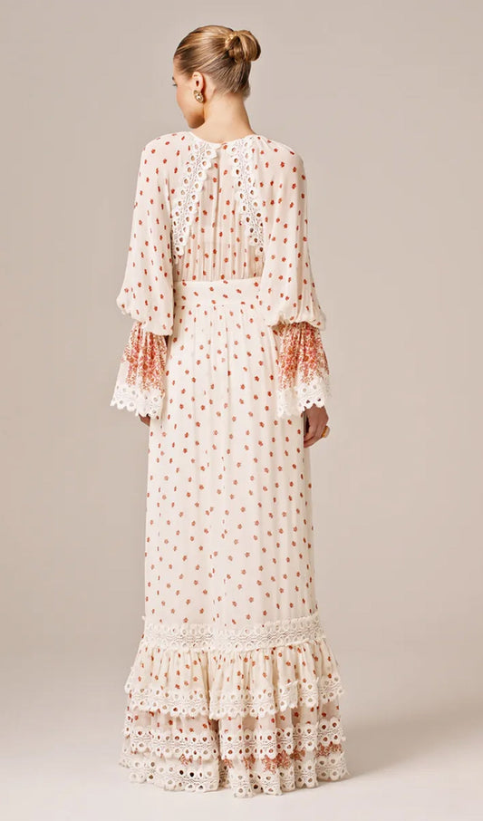 30% İndirimTrendy Vintage Krem Dantel Maksi Elbise