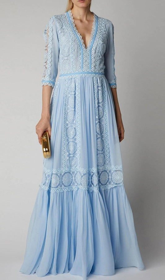 24% İndirimKroşe Dantel V Yaka Maxi Salıncak Elbise