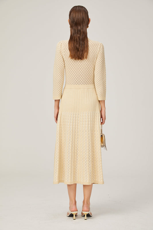 31% İndirimGéraldine Beyaz Delikli Örgü Midi Elbise