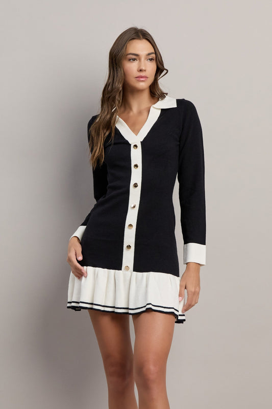 30% İndirimKontrast Yakalı Fırfır Etekli Mini Elbise