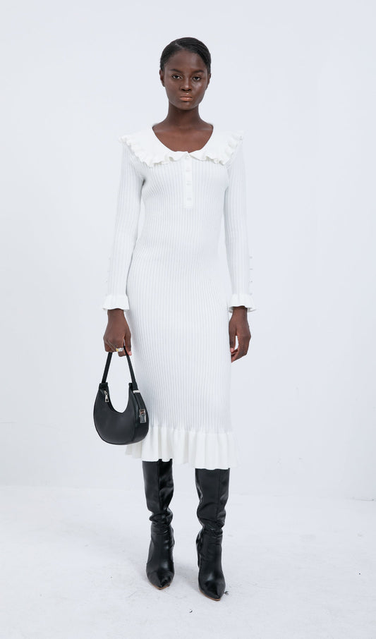 26% İndirimTrendy Örme Fırfırlı Midi Elbise-Beyaz