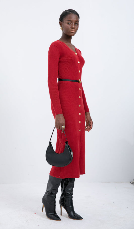 26% İndirimTrendy Kırmızı Örme Midi Elbise
