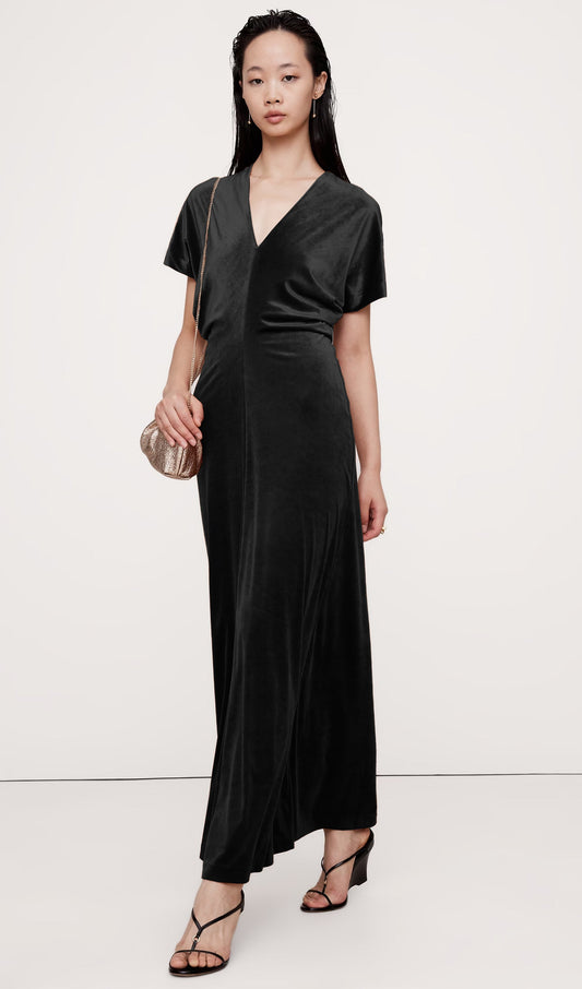 28% İndirimBiye Kesimli Kadife Maksi Elbise-Siyah