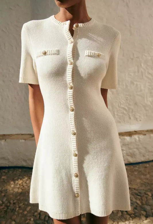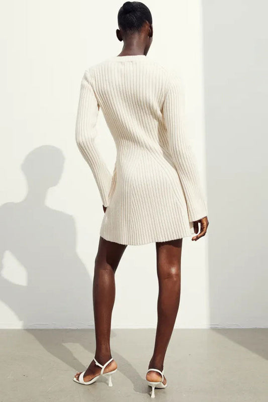 28% İndirimNervürlü Örgü Mini Elbise - Kırık Beyaz