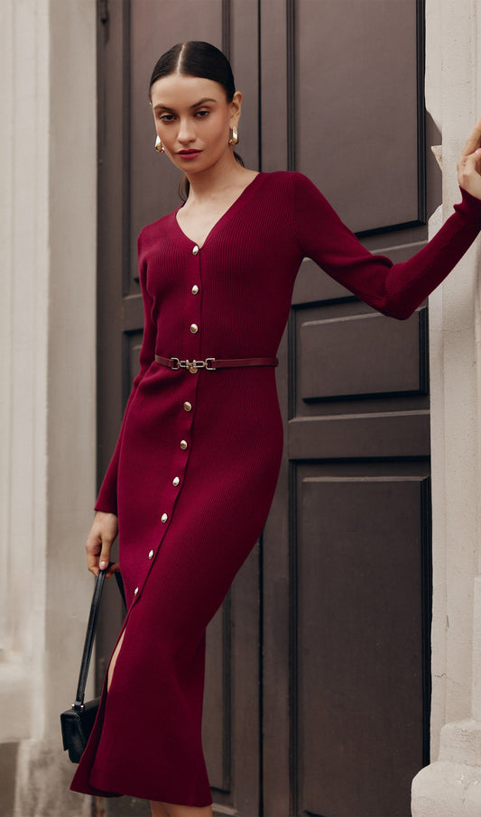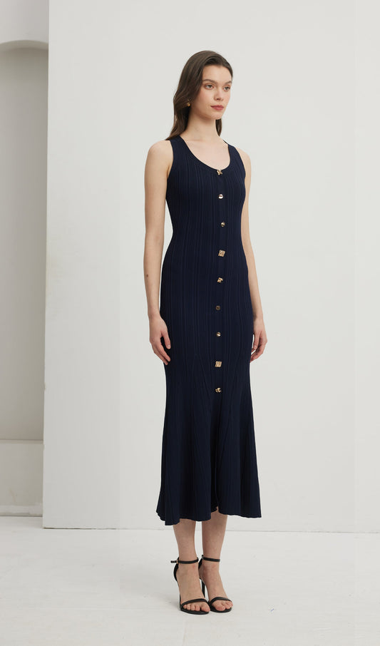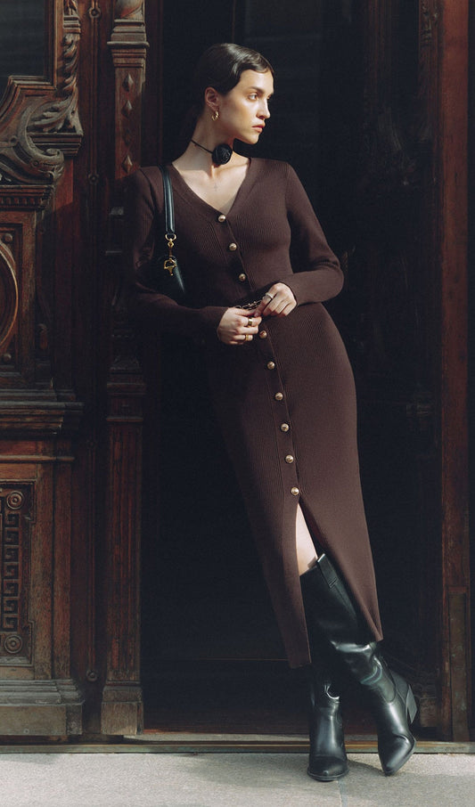 23% İndirimMetalik Düğmeli Örgü Midi Elbise