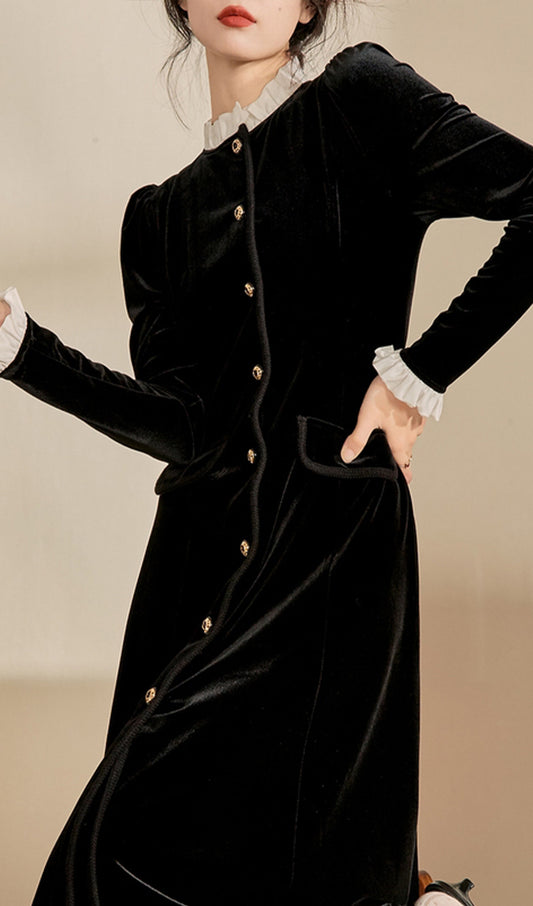 32% İndirimVintage Kadife A Line Siyah Midi Elbise