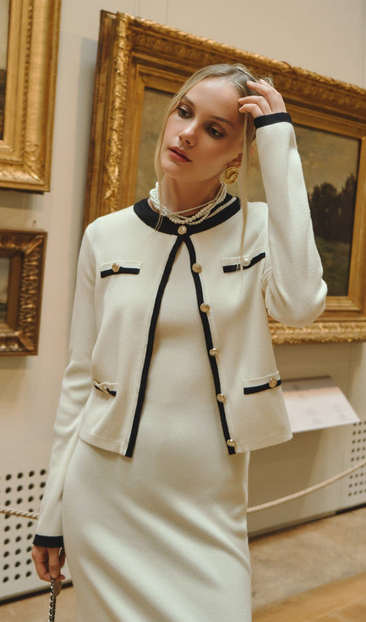 21% İndirimÖrme Midi Elbise İki Parça Takım-Beyaz