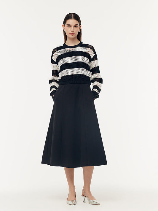 Triacetate Örgü Yelek Elbise ve Çizgili Açık Örgü Kazak İki Parçalı Takım