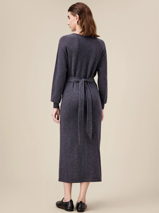 22% İndirimKadın %100 Yün V Yaka Örme Midi Elbise