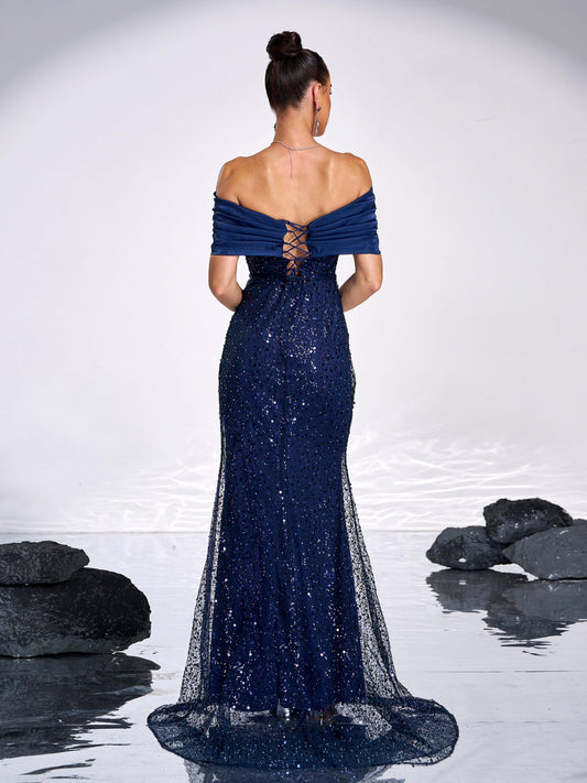 32% İndirimTek Omuz Payet Resmi Maxi Elbise