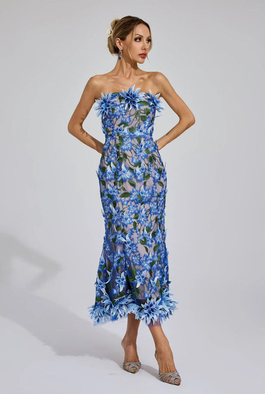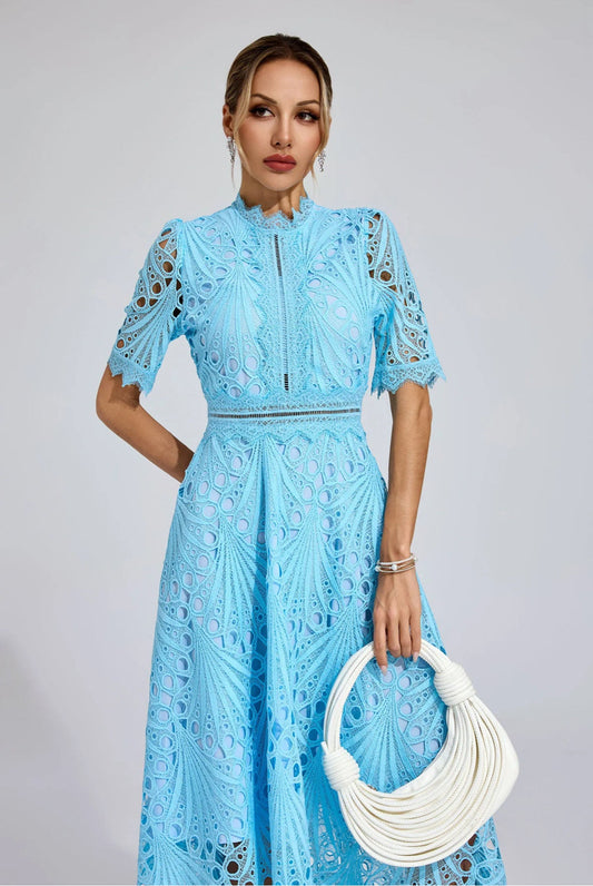 25% İndirimFleur de Ciel mavi Dantel Midi Elbise