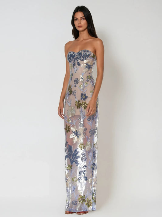 24% İndirimNakoa Straplez Payet İşlemeli Mavi Maxi Elbise