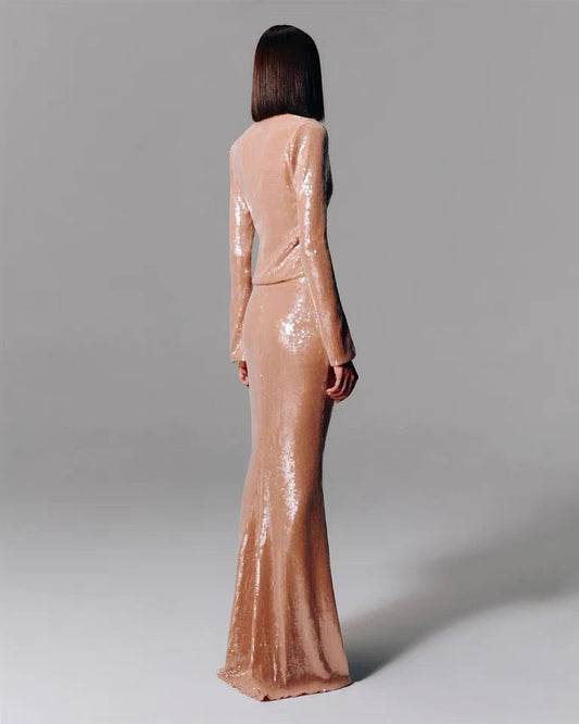 25% İndirimSierra Bronz Payetli Seti Maxi Elbise