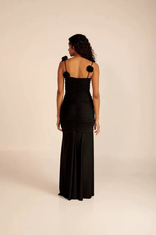 23% İndirimEmly Kristal Taş İşlemeli Maxi Elbise-Siyah