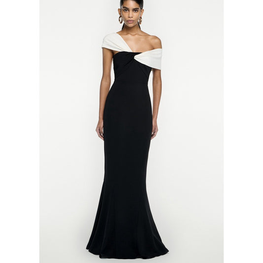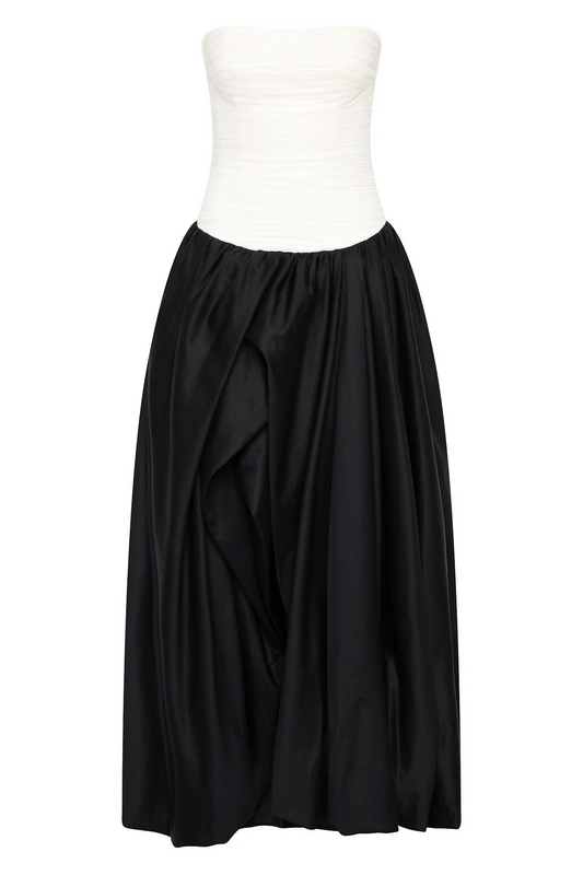 Aje Violette Balon Etekli Maksi Elbise -Siyah Beyaz