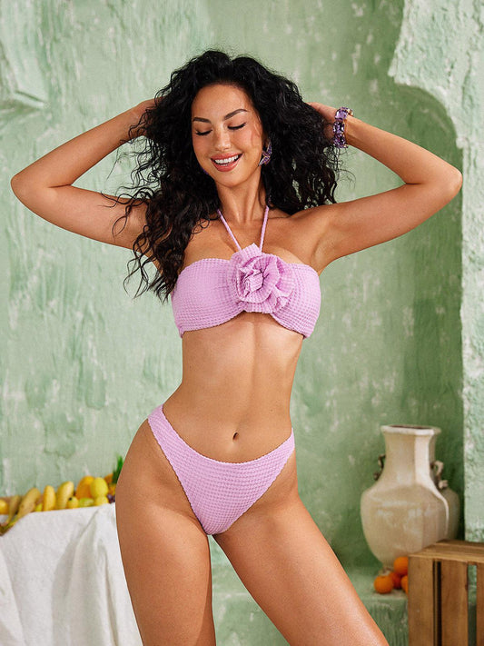 43% İndirimYüksek Bel Üç Boyutlu Dantel Bikini