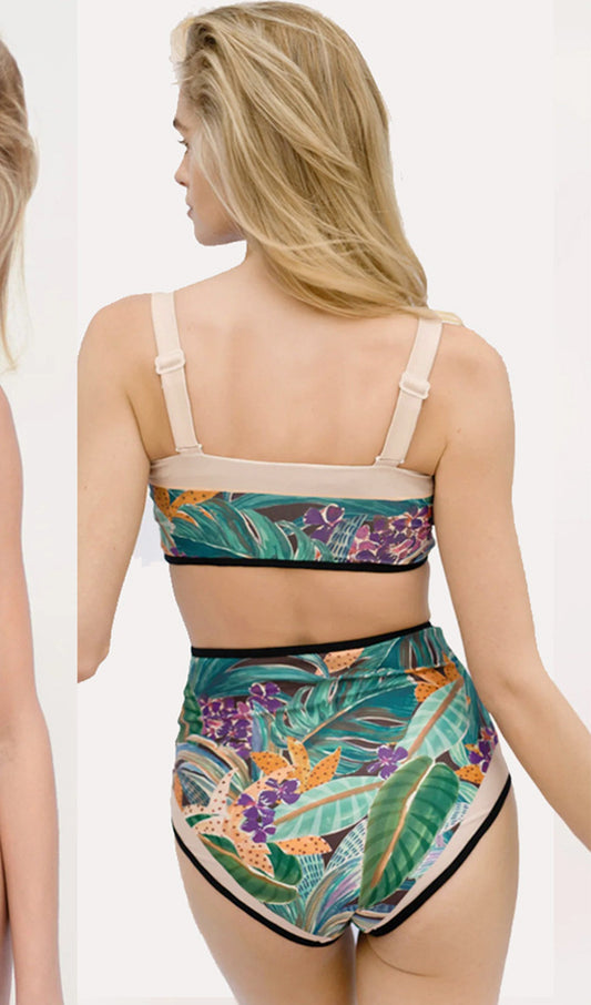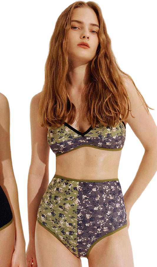 Floral High Waist Bikini Set Swimsuit Swimwear Green
