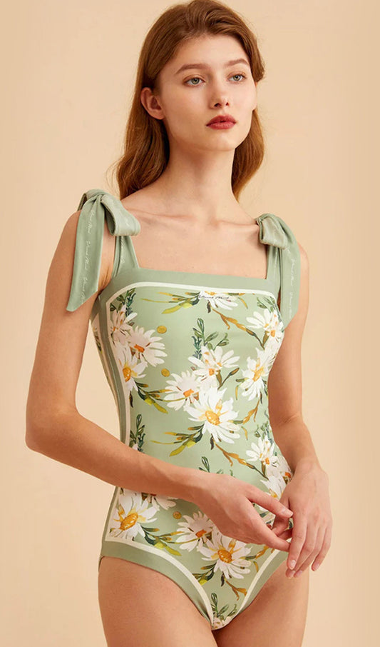 39% İndirimTersinir Çiçekli Tek Parça Mayo Yeşil