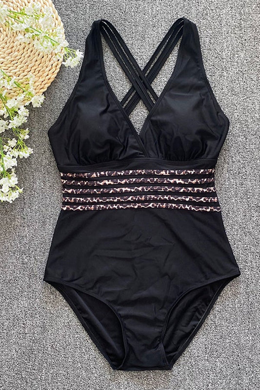 V Yaka Dantel Yukarı Baskılı Tek Parça Mayo-Pareo