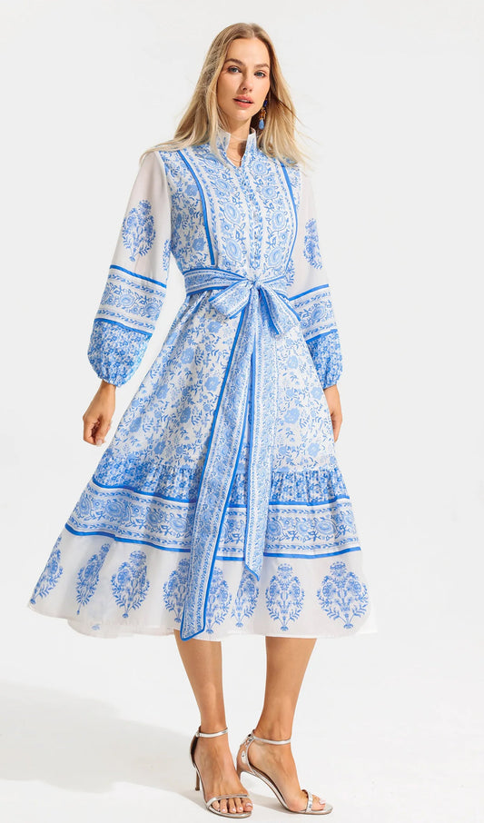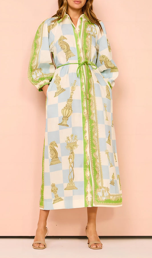 28% İndirimBalık Desenli Kemerli Gömlek Midi Elbise