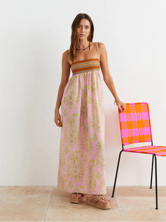 33% İndirimYazlık Baskı Askılı Midi Elbise