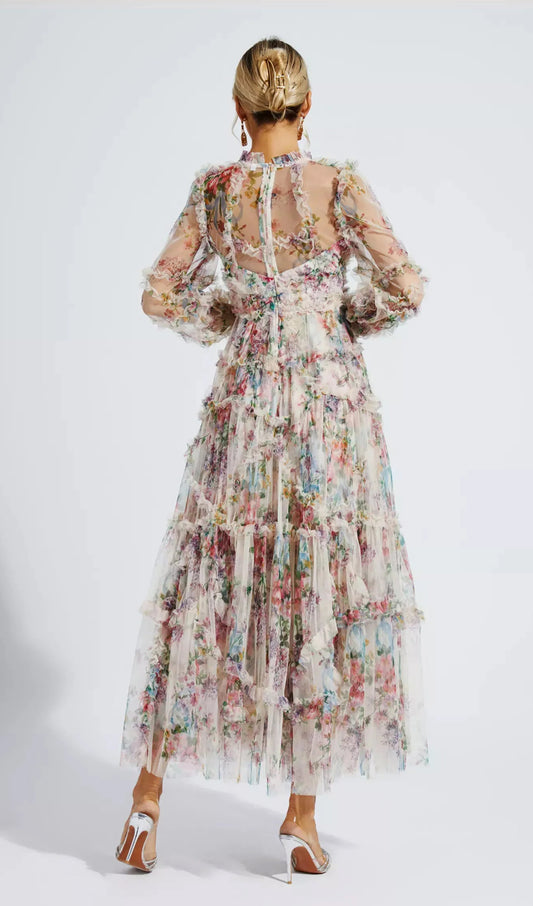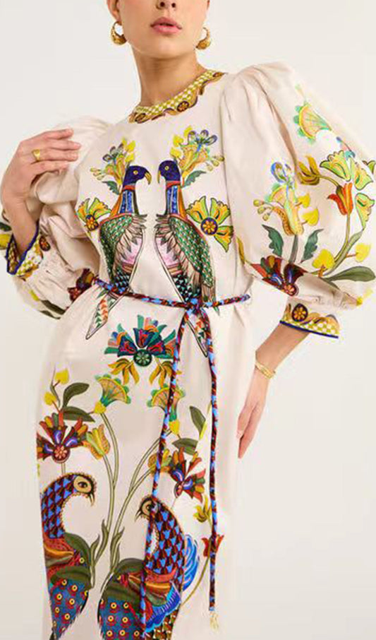 35% İndirimÇiçekli Balon Kollu Midi Elbise