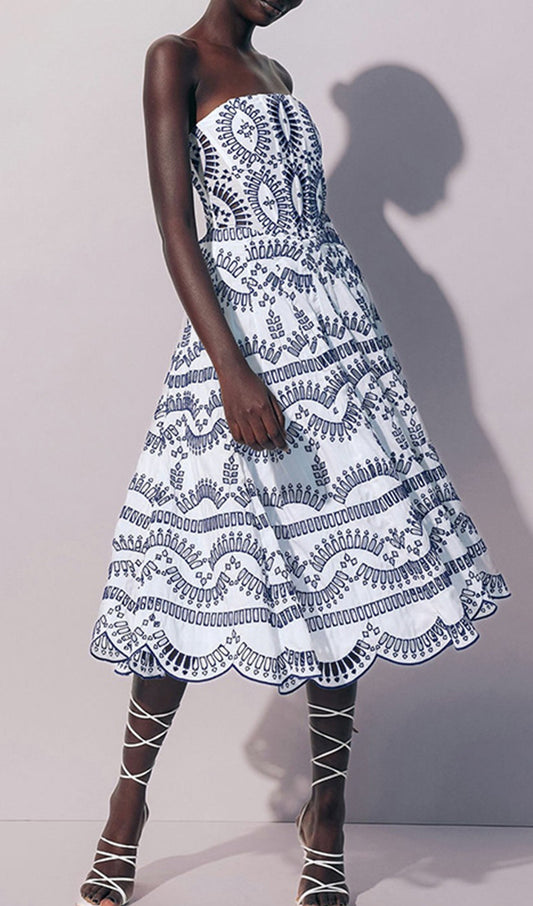 Çiçekli Fit ve Flare Midi Salıncak Bandeau Elbise