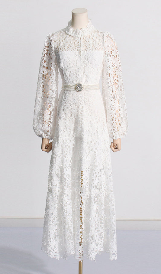 30% İndirimKroşe Delikli Uzun Kollu Midi Elbise