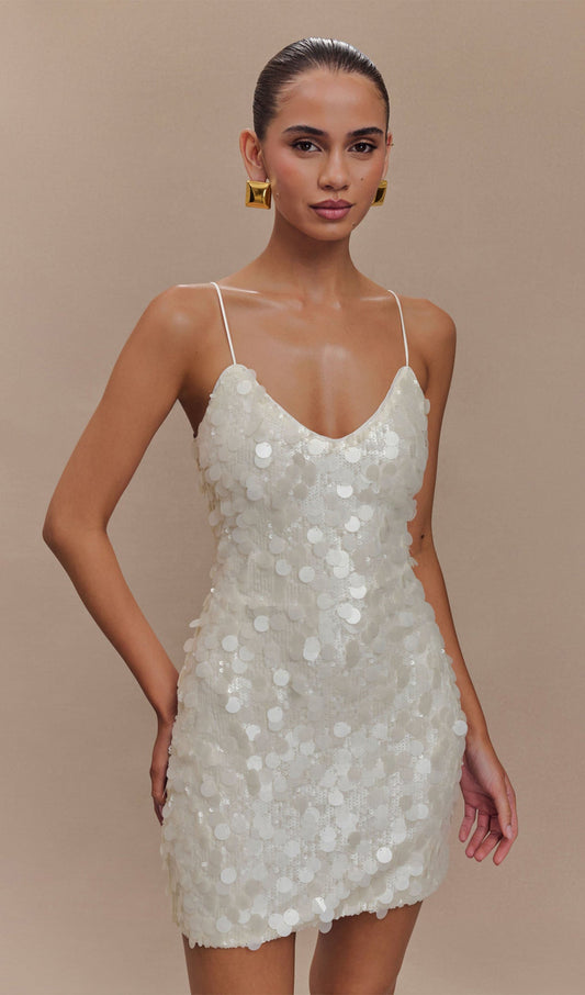 28% İndirimPayetli Mini Elbise - Beyaz
