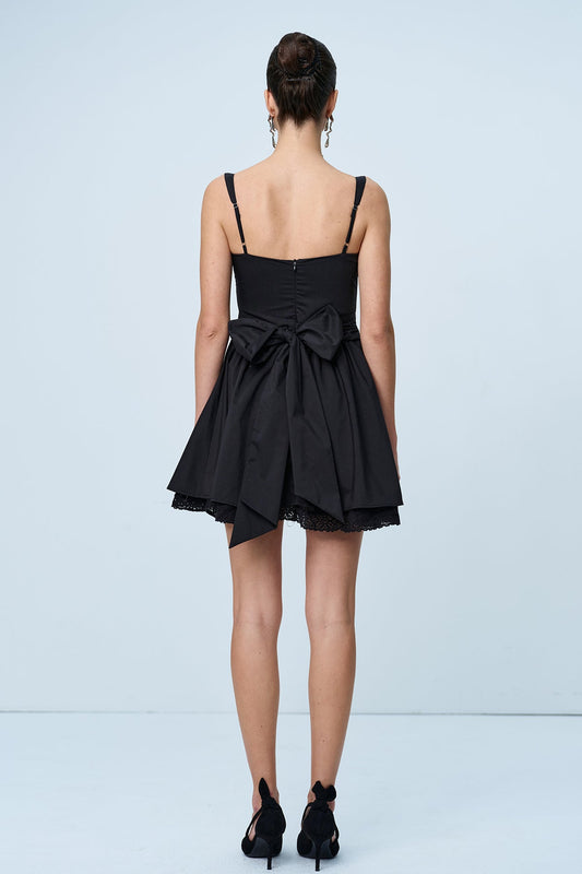Isadora File Sırtı Açık Dantelli Mini Elbise Siyah