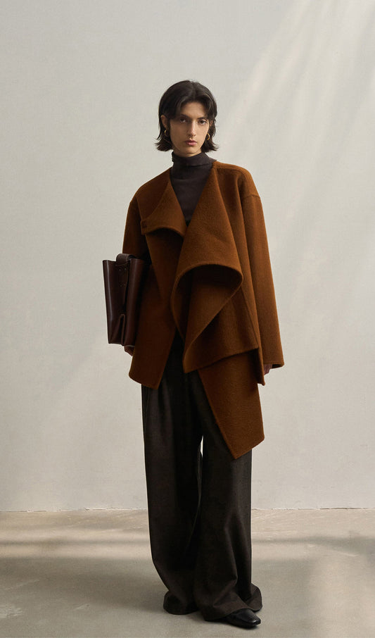 12% İndirimTrendy Oversized Pelerin Stili Kaban-Kahve