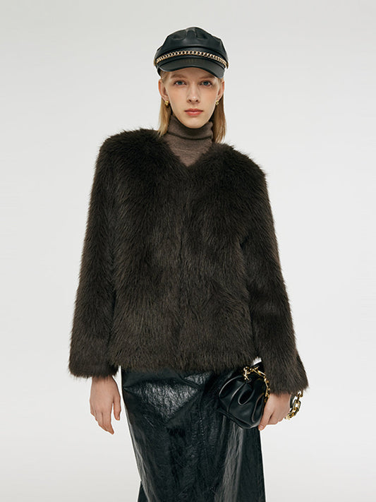 23% İndirimŞık Sahte Kürk Kısa Palto