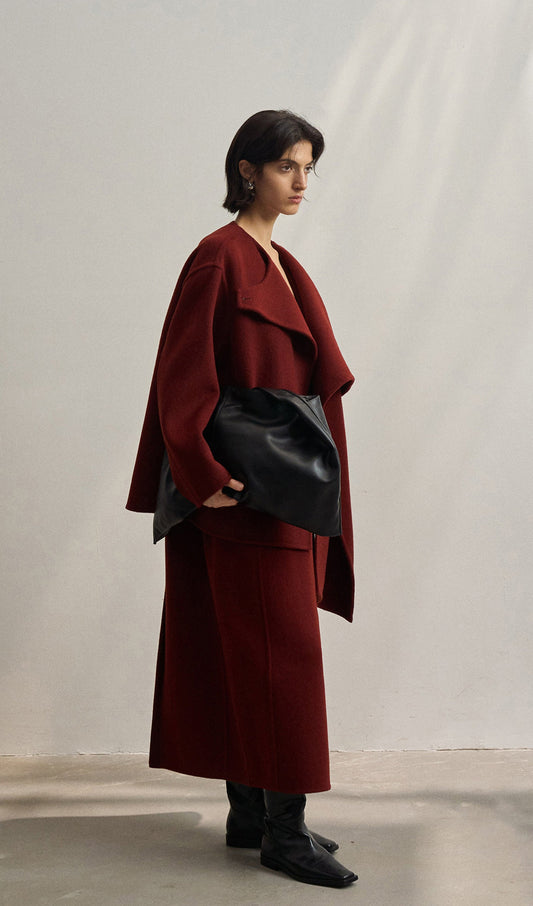 21% İndirimDüz Pelerin Stili %100 Yün Kaban-Şarap Kırmızısı