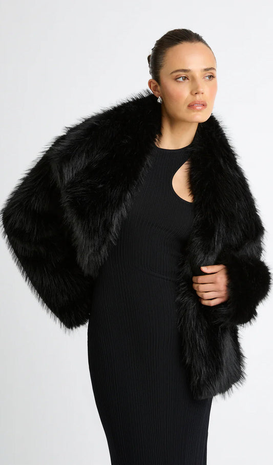25% İndirimSiyah Uzun Boy Eko Kürk Kaban